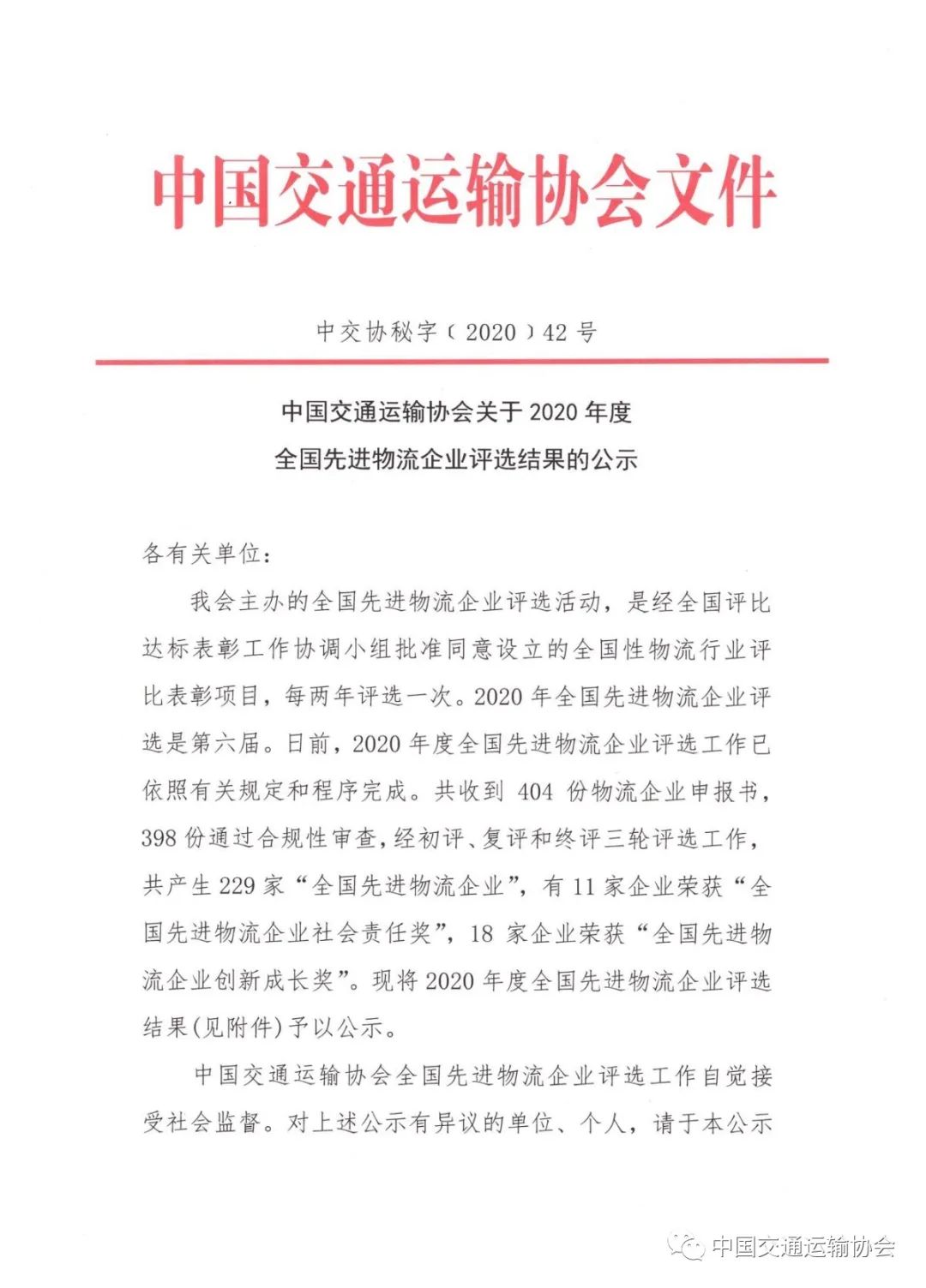 近日,由中國交通運輸協(xié)會主辦的全國先進物流企業(yè)活動評選結(jié)果公布,通過嚴格評選,臨沂天源國際物流有限公司被評為“2020年度全國先進物流企業(yè)”。