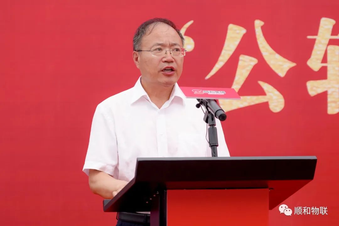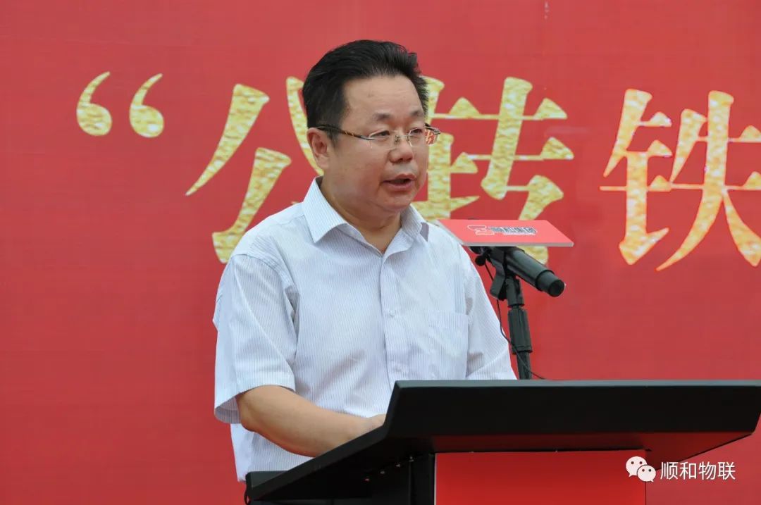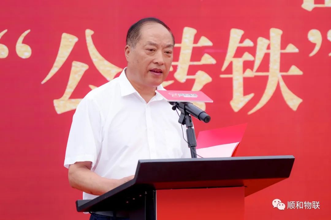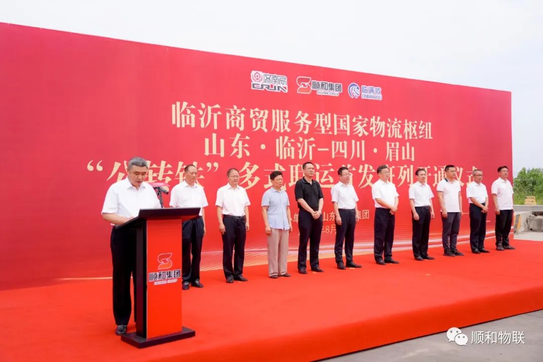 8月9日上午,由山東順和集團(tuán)主辦,山東順和物聯(lián)科技有限公司及事業(yè)合伙人山東臨滿歐國際物流有限公司、山東順和國際物流有限公司、臨沂濟(jì)鐵物流園協(xié)辦的“臨沂商貿(mào)服務(wù)型國家物流樞紐(山東·臨沂—四川·眉山)‘公轉(zhuǎn)鐵’多式聯(lián)運(yùn)首發(fā)班列開通儀式”順利舉行。中國鐵路濟(jì)南局集團(tuán)有限公司貨運(yùn)部主任劉洪青,臨沂市人大常委會(huì)副主任劉飛,臨沂商城黨工委書記、管委會(huì)主任王景美,臨沂市重點(diǎn)建設(shè)項(xiàng)目服務(wù)中心主任徐寶宏,臨沂市交通局道路運(yùn)輸服務(wù)中心黨委成員、副主任張樹峰,臨沂市鐵路民航事業(yè)發(fā)展中心黨組成員、副主任朱孔嚴(yán),臨沂車務(wù)段段長(zhǎng)張鈺國,臨沂車務(wù)段副段長(zhǎng)劉玉方,蘭山區(qū)政府副區(qū)長(zhǎng)、商城黨組副書記、管委會(huì)副主任田宗春,濟(jì)南鐵路局濟(jì)鐵物流園總經(jīng)理陳偉,蘭山經(jīng)濟(jì)開發(fā)區(qū)管委會(huì)副主任鄭峰,蘭山區(qū)交通局局長(zhǎng)董建梅,蘭山區(qū)發(fā)改局副主任朱雪松,山東順和集團(tuán)黨委書記趙玉璽,山東臨滿歐國際物流有限公司總經(jīng)理咸友濤及順和集團(tuán)各企業(yè)、部門人員出席儀式,儀式由順和集團(tuán)董事長(zhǎng)許大勇主持。 順和集團(tuán)黨委書記趙玉璽在致辭時(shí)表示:順和集團(tuán)將繼續(xù)按照市委、市政府“商、倉、流、園”一體化、“四個(gè)商城”建設(shè)的指導(dǎo)方針,以強(qiáng)烈的政治責(zé)任感和歷史使命感,大膽創(chuàng)新、奮力拼搏,積極搭建國家物流樞紐總平臺(tái)、總體系,加快推動(dòng)商貿(mào)物流轉(zhuǎn)型升級(jí)和公轉(zhuǎn)鐵多式聯(lián)運(yùn)、同線路聚合發(fā)展,打造標(biāo)桿示范高地,為臨沂商貿(mào)物流轉(zhuǎn)型向高質(zhì)量發(fā)展插上騰飛的翅膀貢獻(xiàn)順和力量!