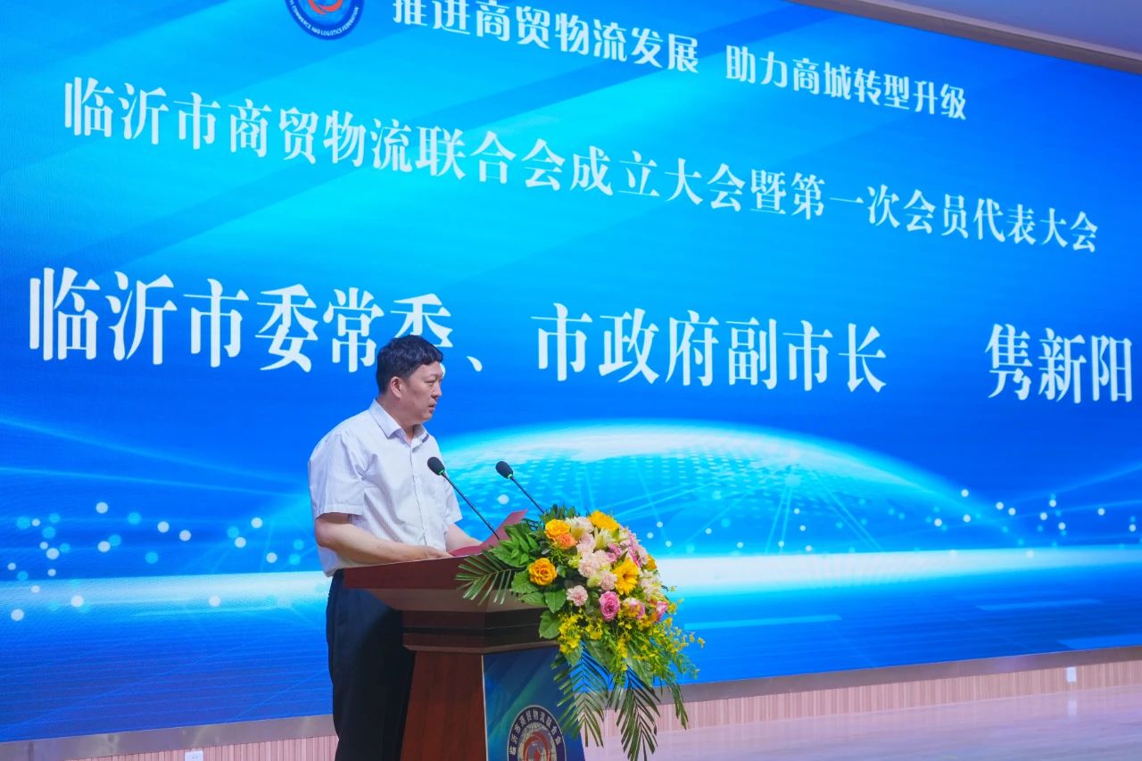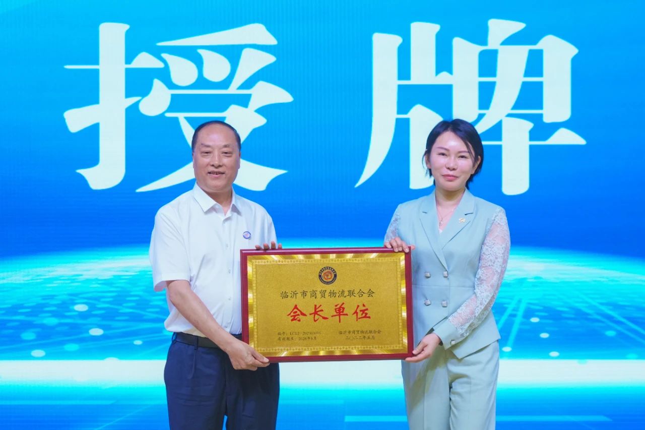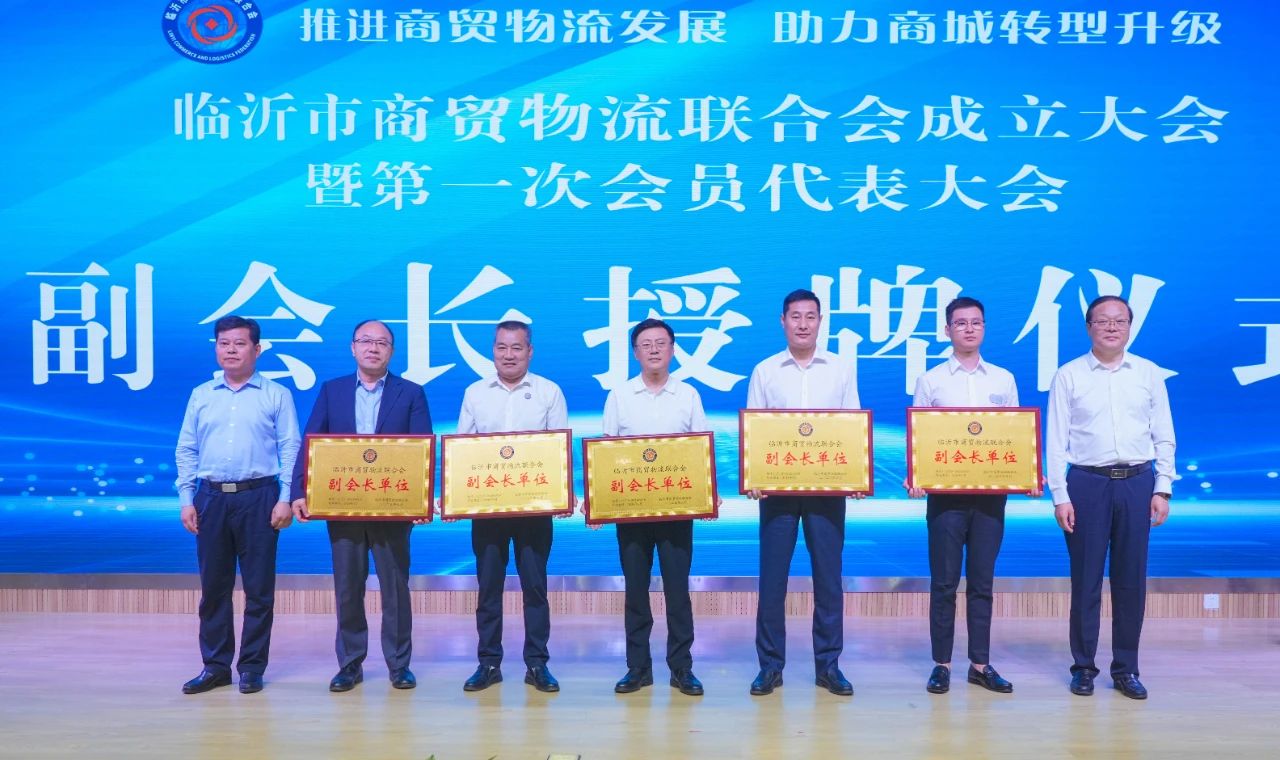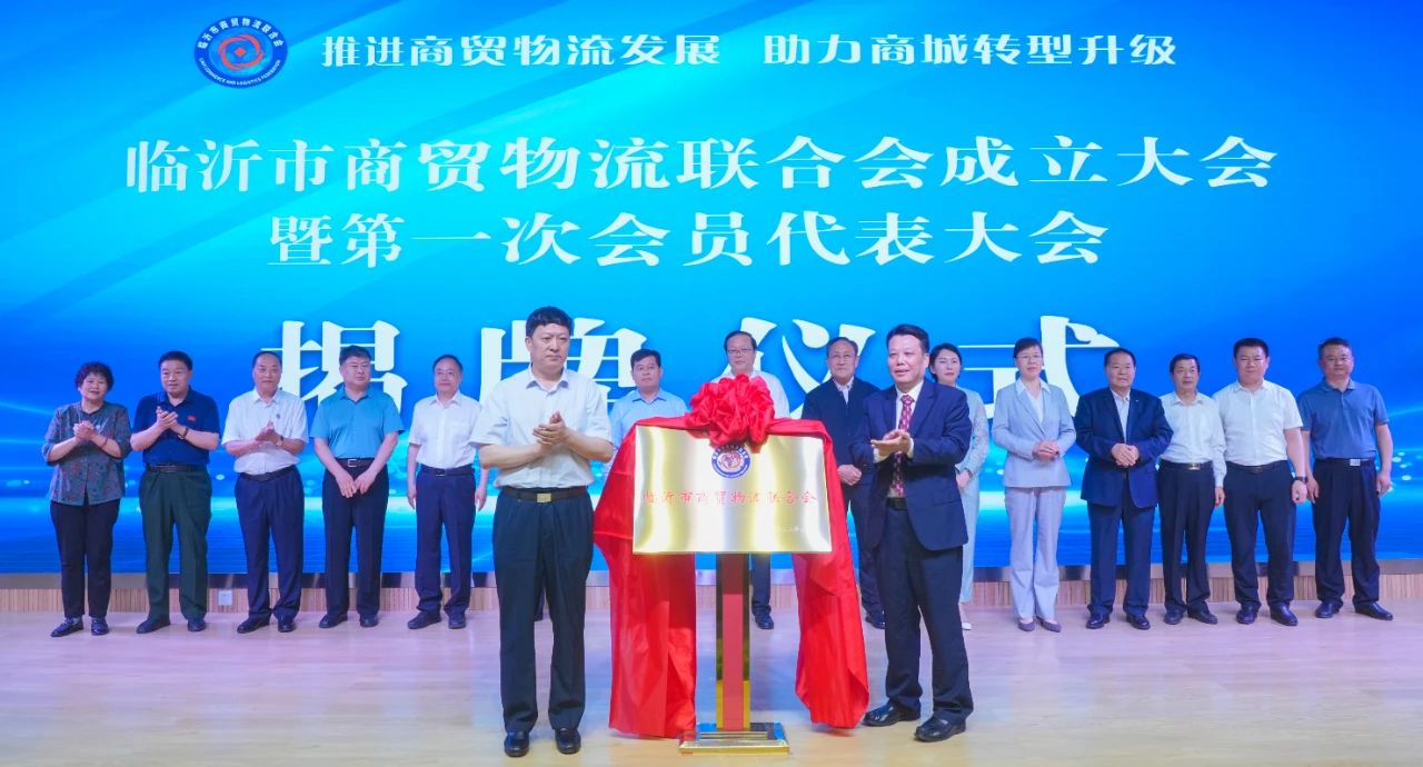 臨沂市委常委、市政府副市長(zhǎng)雋新陽(yáng)與中國(guó)商業(yè)聯(lián)合會(huì)采購(gòu)商分會(huì)孫琛瑋副會(huì)長(zhǎng)為臨沂市商貿(mào)物流聯(lián)合會(huì)揭牌