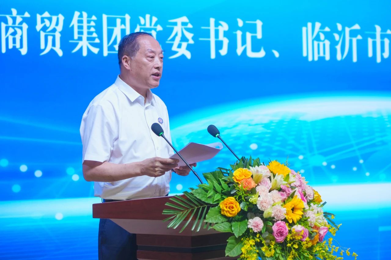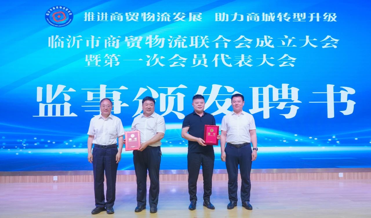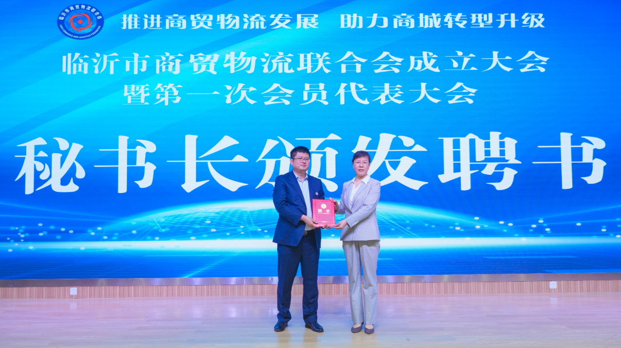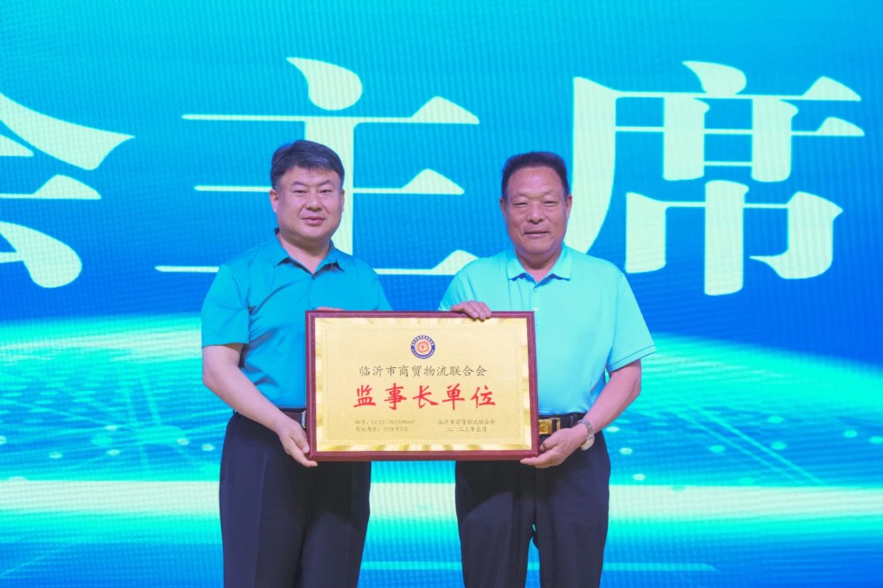 臨沂市委常委、市政府副市長(zhǎng)雋新陽(yáng)與中國(guó)商業(yè)聯(lián)合會(huì)采購(gòu)商分會(huì)孫琛瑋副會(huì)長(zhǎng)為臨沂市商貿(mào)物流聯(lián)合會(huì)揭牌