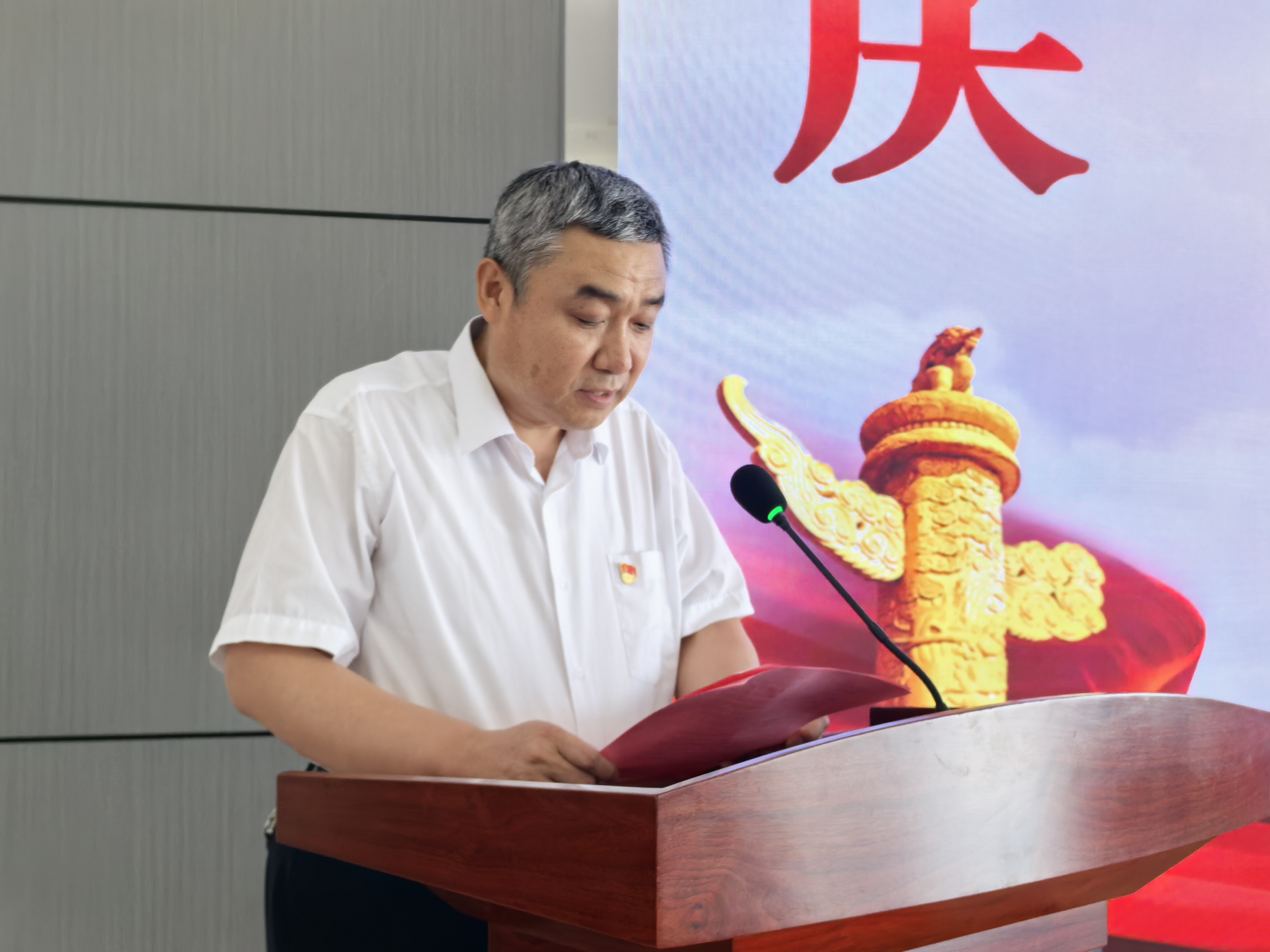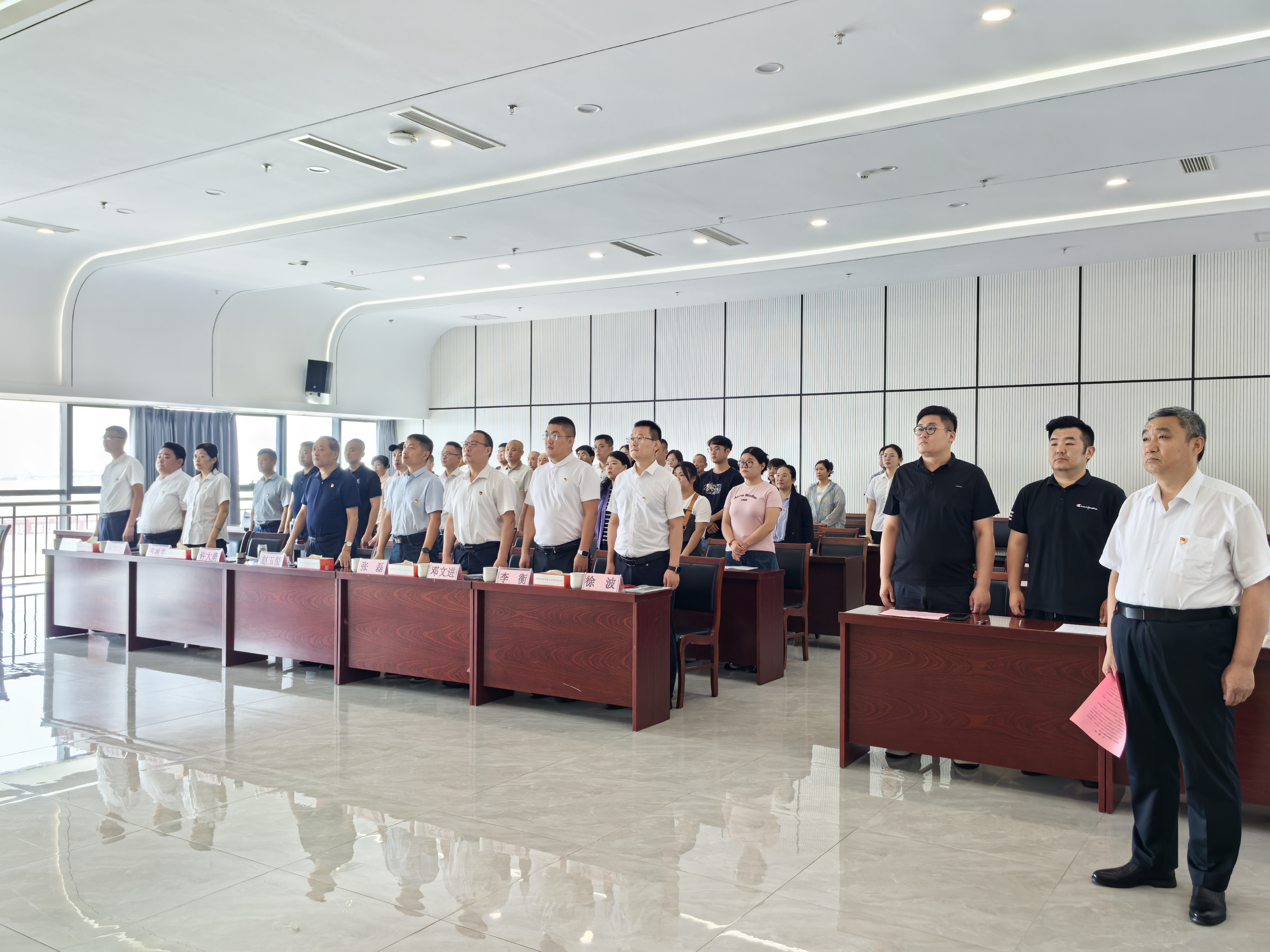 大會(huì)在莊嚴(yán)雄壯的國(guó)歌聲中拉開序幕。激昂的旋律響徹會(huì)場(chǎng),澎湃的愛國(guó)愛黨熱情在每個(gè)人心中激蕩。這一神圣時(shí)刻,不僅是對(duì)偉大祖國(guó)的深情禮贊,更是全體黨員重溫入黨初心、堅(jiān)定理想信念的精神洗禮,激勵(lì)著大家以更加飽滿的熱情和昂揚(yáng)的斗志投身于新時(shí)代的偉大征程。
