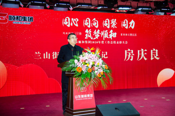 2021年1月28日,山東順和集團2020年度工作總結表彰大會在集團15樓會議中心隆重召開。蘭山商城管委會黨委書記、管委會主任劉愛友、蘭山商城管委會副主任魏云廣、蘭山街道黨工委書記房慶良、蘭山商城管委會辦公室主任陳臣、山東順和集團黨委書記、董事長趙玉璽、黨委副書記、總經(jīng)理許大勇及集團班子成員、社區(qū)兩委、受表彰代表、員工代表、經(jīng)營業(yè)戶代表、媒體代表等參加大會。